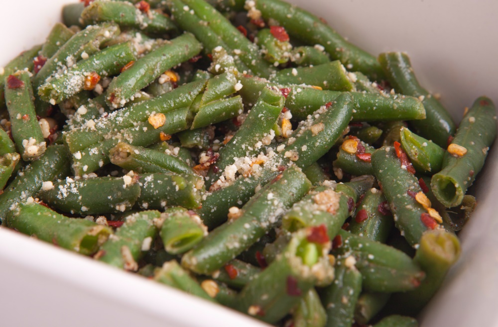 - Heat Green Beans in the microwave, then remove from steamer bag and place on a plate.