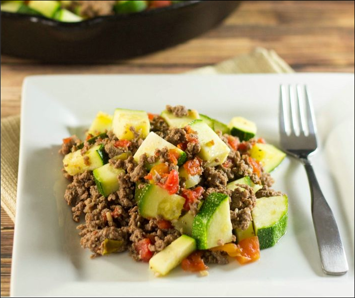 - Heat Angus Burger and Green Zucchini in the microwave. Once heated, finely chop the Angus Burger and place in a bowl along with the Green Zucchini.